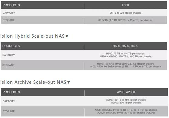 戴爾易安信的Isilon是一個分布式集群NAS系統(tǒng),支持主流的網絡文件系統(tǒng)、對象、REST、SWIFT、HDFS等訪問協(xié)議。Isilon系統(tǒng)分為三個子型號:F、H、A。